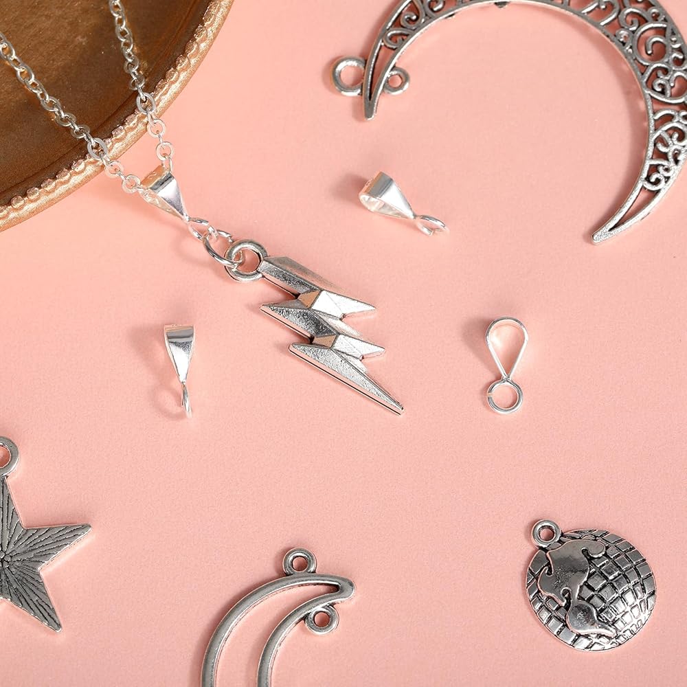【Package Included】You will receive 4 necklace bails for pendants, enough quantity for you to make your own unique pendant jewelry, this pinch bails for jewelry making has a simple design and can be matched with one or more pieces of jewelry