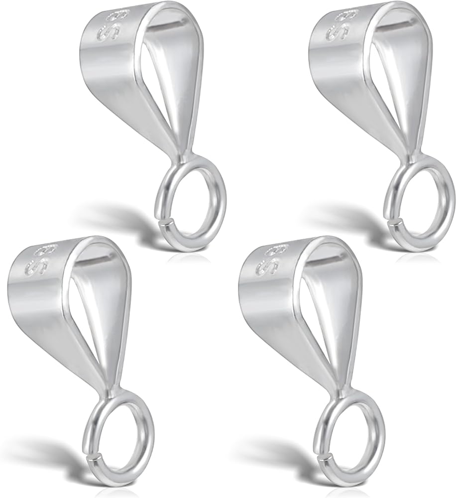 4 Pcs 925 Sterling Silver Pendant Clasp for Necklace Bail Connector with Open Loop Pinch Bails for Pendants Necklace Pendant Clasp Connectors Pinch Bails for Pendants Jewelry Making Dangle Charm