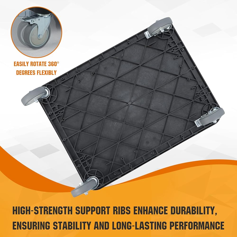 🔆 High-Quality Sturdy Foam Construction: Made from industrial-strength polypropylene reinforced with high-density structural foam, this utility cart is built to withstand heavy use in demanding environments. The durable materials resist rust, dents, water, and corrosion, ensuring long-lasting performance for both indoor and outdoor applications. The foam construction also keeps the cart lightweight while maintaining exceptional strength and stability.