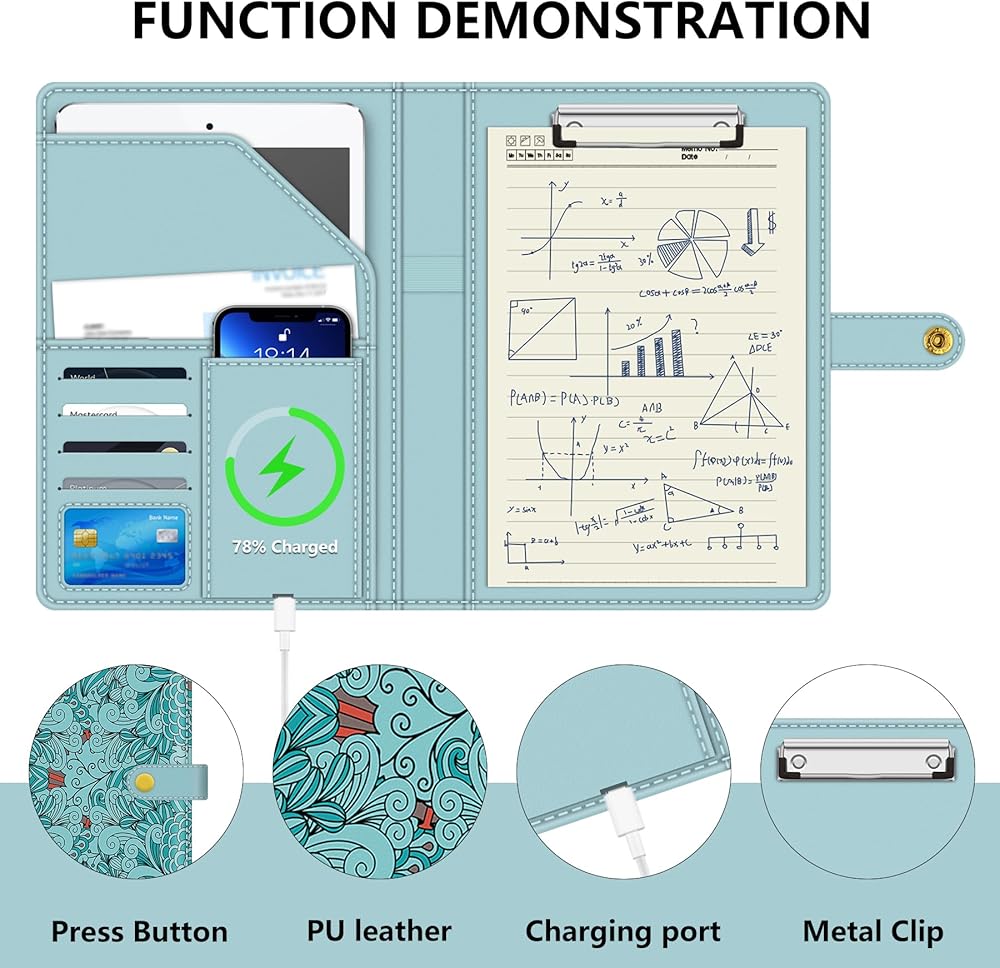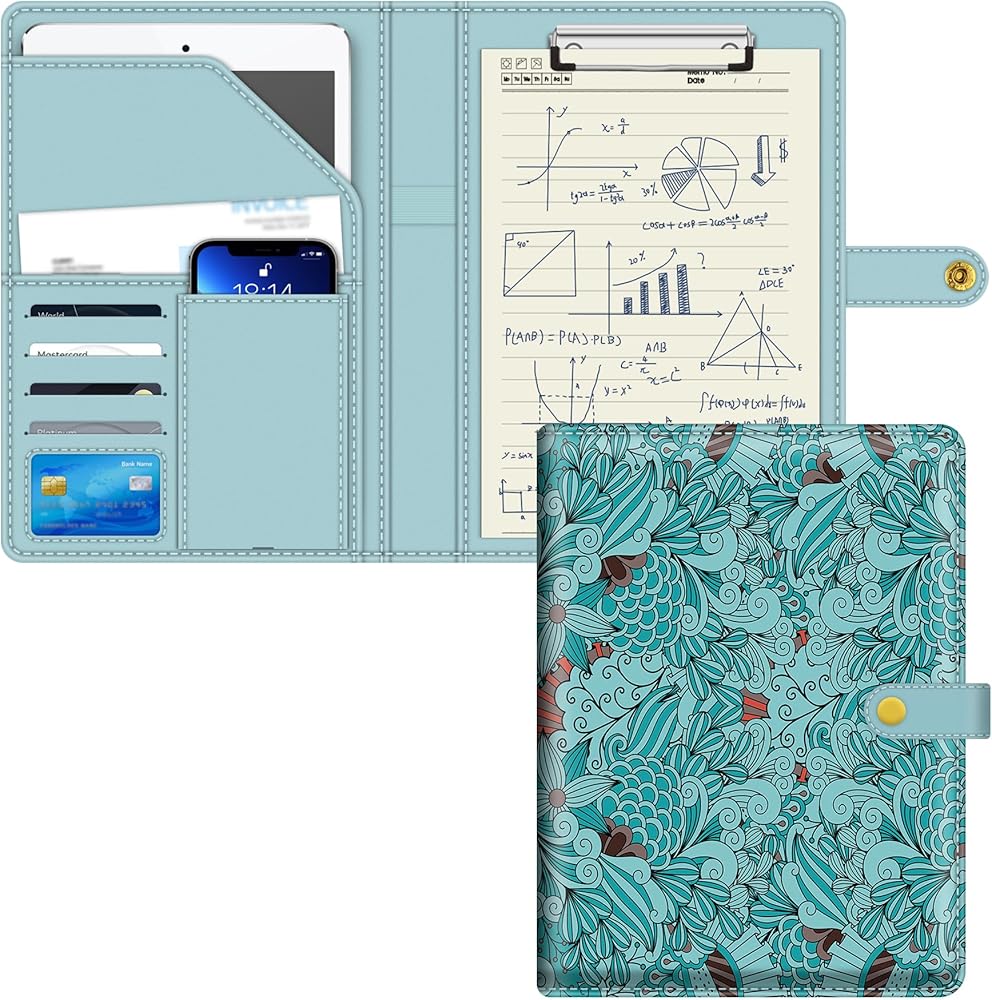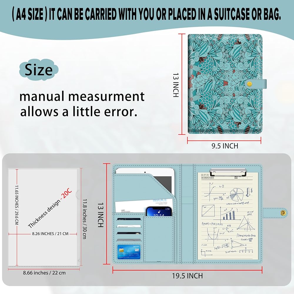 ELEGANT & PRACTICAL: 100% brand new! Made of high quality PU leather with various printed patterns. Our portfolio equipped with a clipboard, suitable for A4 paper, strong clip holds paper steady. 4 card slots, a cellphone pouch, a pen holder and a middle pocket and resume pocket, make you stay organized and professional during a business trip, an interview or a conference etc.