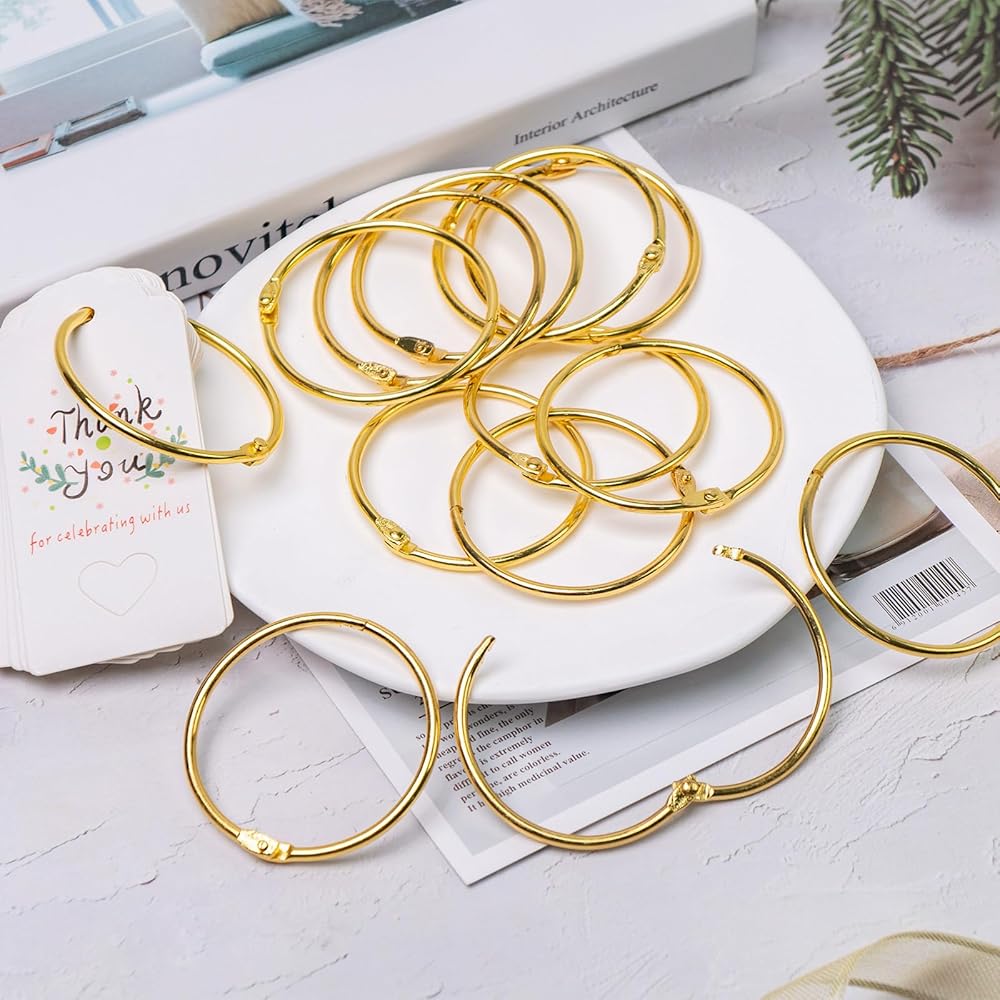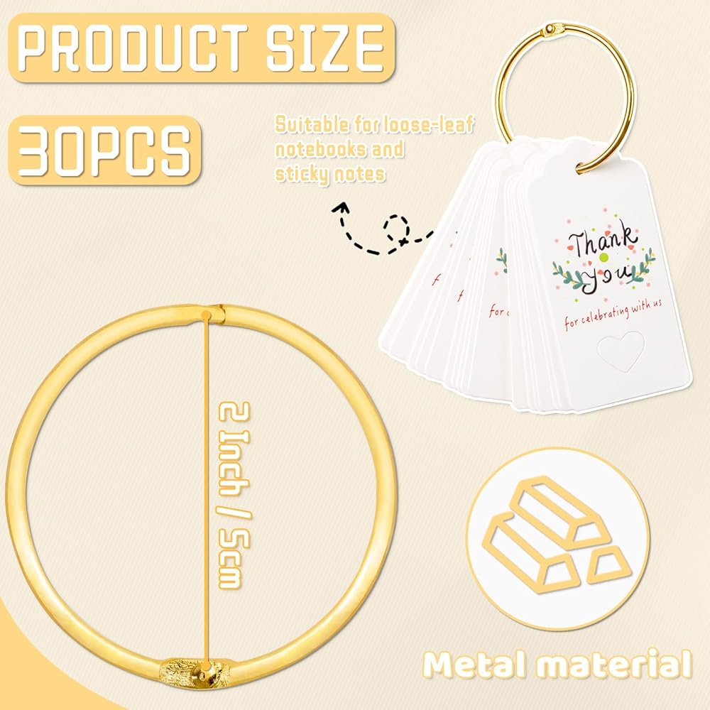 30 PCS 2 Inch Loose Leaf Binder Rings, Book Binder Rings, Metal Rings for Index Cards, Steel Binder Rings, Golden Paper Ring for Office, School, Home (Gold)
