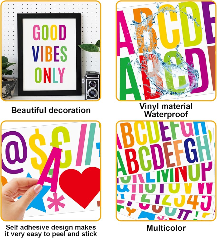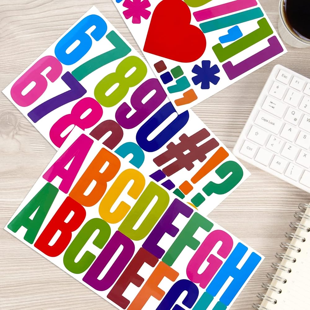 Sufficient Quantity: you will receive 30 sheets of letter stickers with a total of 500 pieces, containing 260 pieces of 2.5 inch capital letters, 100 pieces of 2.5 inch numeric and 140 Pieces punctuation, ample quantity can meet your decorating needs