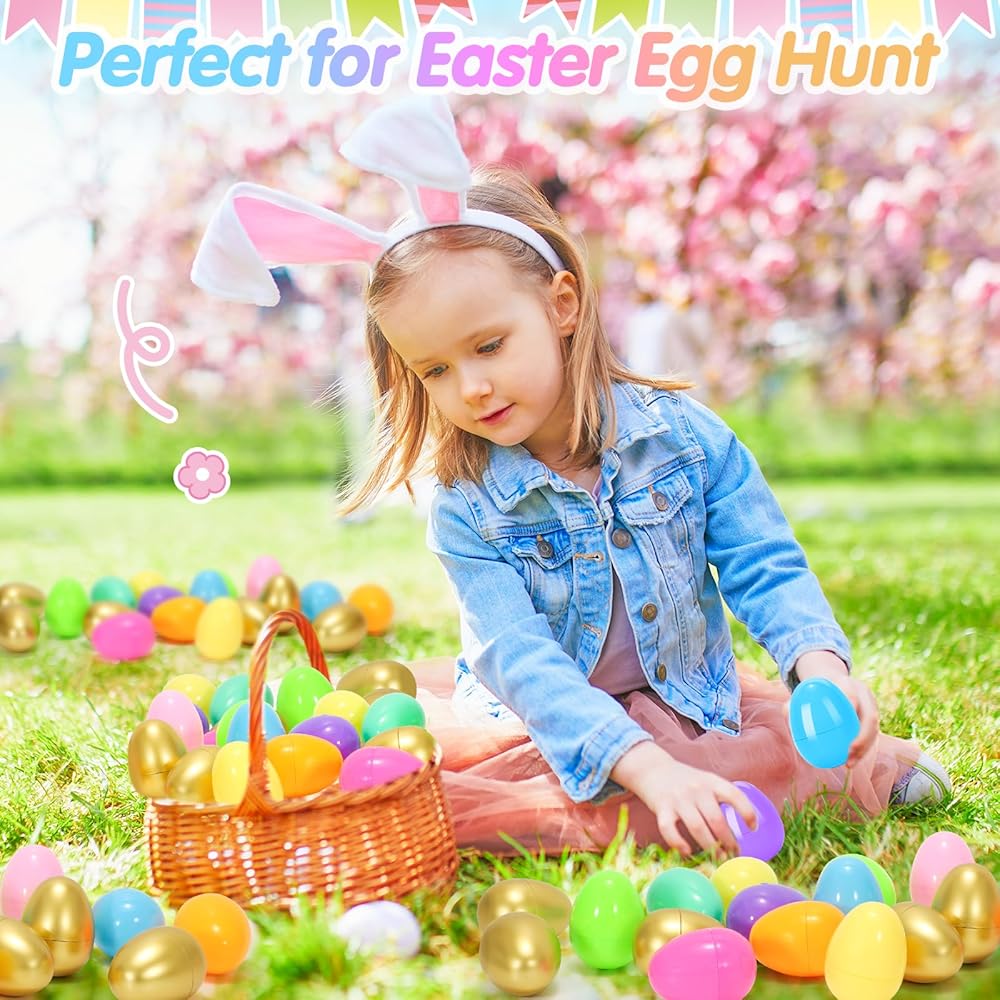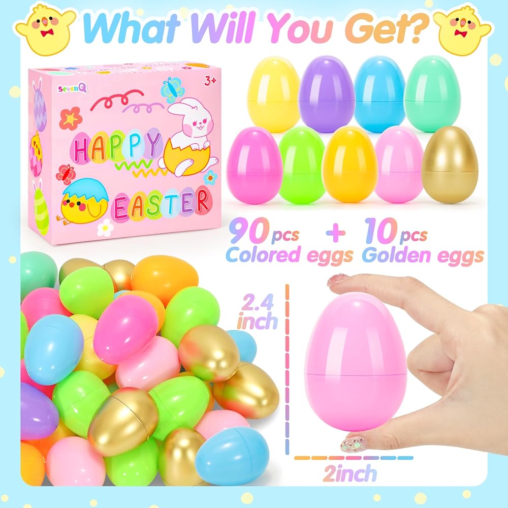 Fillable Easter Eggs: Kids toys set includes 90 multicolor Easter eggs (8 color) and 10 golden eggs. These bright, solid colored eggs include red, orange, yellow, green, blue, purple, pink and gold. Perfect for filling with candy, small toys or surprises, it's a fun way to prepare for your Easter celebrations