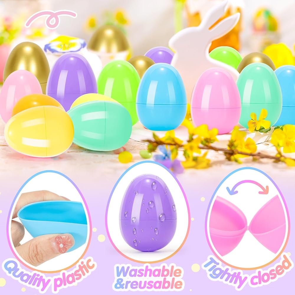 Easy to Fill: Easter egg fillers are easy to fill and assemble. Each egg opens from the middle, and the secure hinge design ensure that they stay together. Kids can enjoy the excitement of opening the eggs and discover fun surprises, making everyone involved a pleasant experience