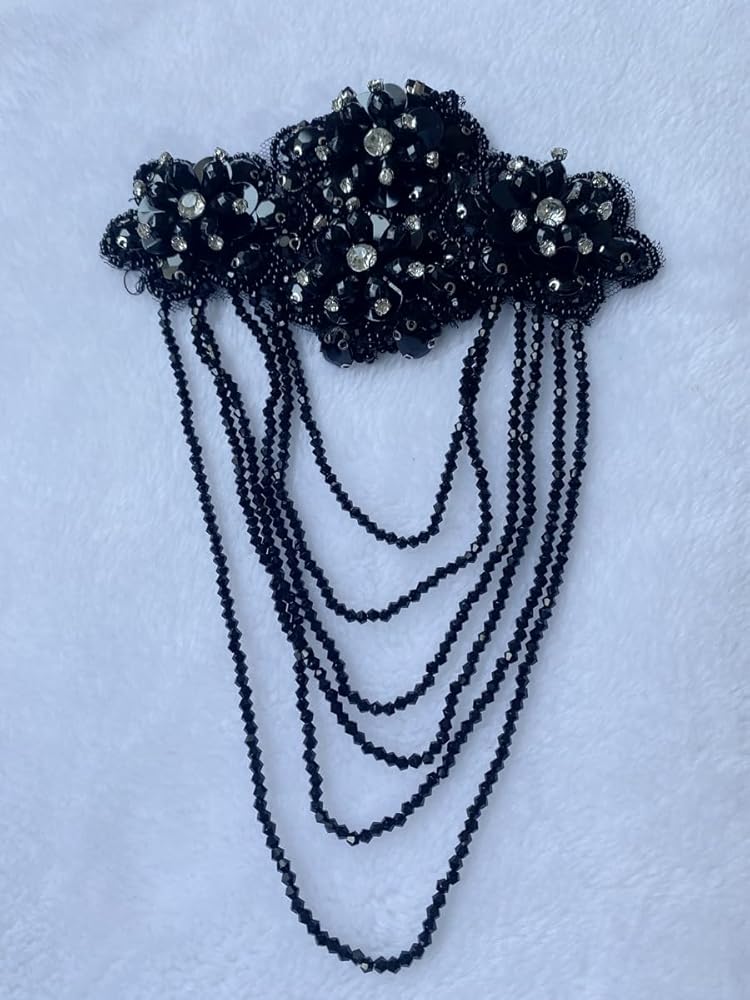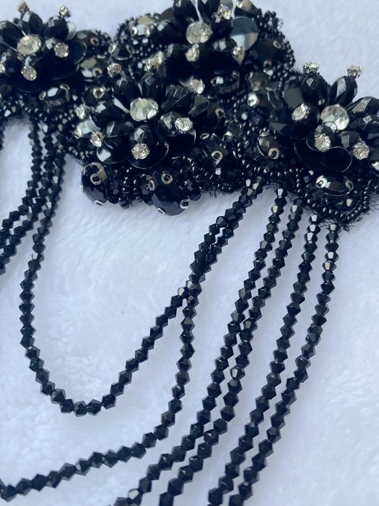 Handmade with intricate details, this 3D beaded appliqué features a beautiful three-dimensional flower design, adorned with rhinestones, crystals, beads,