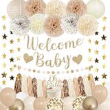 Welcome Little Baby: Set the tone for a heartwarming celebration with welcome baby banner and cake topper in this neutral baby shower decorations that send warm greetings to guests and create a sense of expectation and excitement; Complement with the delicate and glittering star garland of this gender neutral baby shower decorations that lights the space, and soothing light adds a touch of elegance around