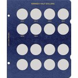 Strong, soil-resistant Whitman albums with blue textured leatherette cover are designed with thumb notches for easy window removal. 48 openings. Dated to 2013 with additional openings with no dates. One of the most beloved U.S. coins, the Kennedy half dollar vanished from circulation soon after their release in 1964. Its valuable silver along with a feeling of grief by the recent Kennedy's assassination made the coin impossible to circulate. In order to alleviate the problem, the U.S. Mint changed the composition from 90% silver and 10% copper as seen in the 1964 coins to 40% silver and 60% copper for the ones struck from 1965-1970. The change failed and the coins were still rarely seen in public. As a consequence, silver was completely eliminated, and from 1971 to Date the coins have a pure copper inner core and an outer layer made of 75% copper and 25% nickel. A special coin to commemorate the Bicentennial was struck in 1976. All Kennedy half dollar coins measure 30.6 mm in diameter. Their weight went from 12.50 grams in 1964 to 11.50 grams from 1965-1970. Kennedy half dollars now weigh 11.34 grams