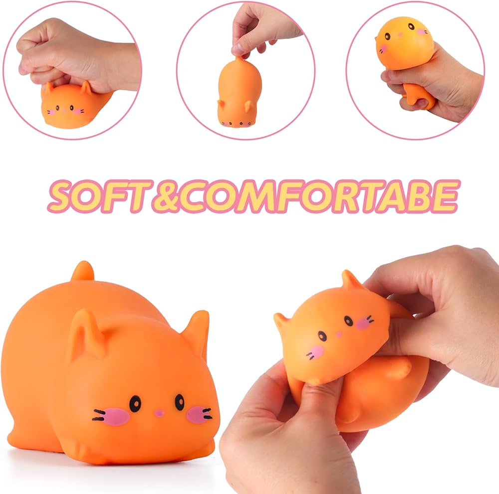 QUALITY MATERIALS: Cat squishy toys are made of high quality material, safe and durable, you can squeeze and stretch as much as you want, this gadget helps to improve concentration and relaxation, just rinse with water after getting dirty