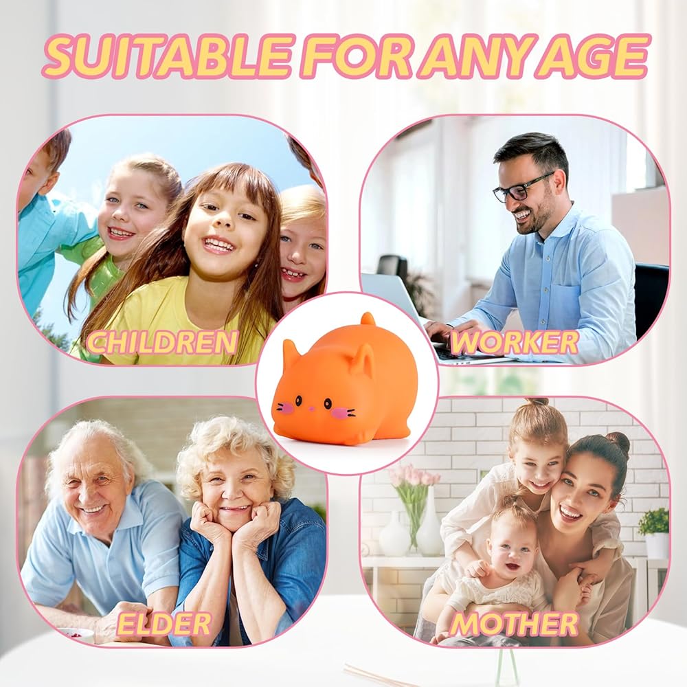 CREATIVE DESIGN: Cute cat squishy design, lying on the ground and looking at you, makes you want to squeeze it. Soft and delicate touch, great for stress relief. The cute cat stress balls has excellent elasticity, squeezing it can release your inner stress and anxiety, allowing you to focus more on your studies or work