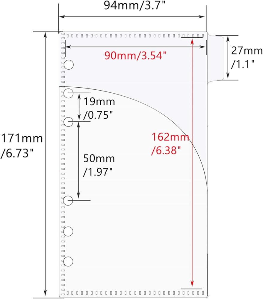 Binder divider measures 171mm x 94mm (6.73" x 3.7") with 1/6 Tab, side-loading design that match well with your 6-ring A6 binders or planners;