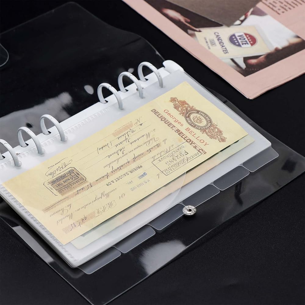Plastic pocket for collecting and organizing cash, coupons, bills, vouchers, stamps, coins, finances, receipts, cards or other items is a practical gift for organizing binders.