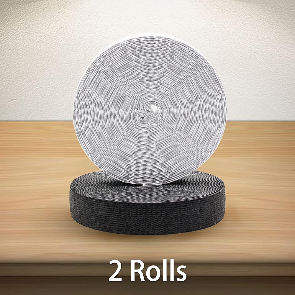 Size: Comes with two rolls of white and black elastic bands, each of which is 1.2mm thick, 3/5 inch wide and 11 yards long. The white is simple and the black is stain-resistant. The two colors can match various color items