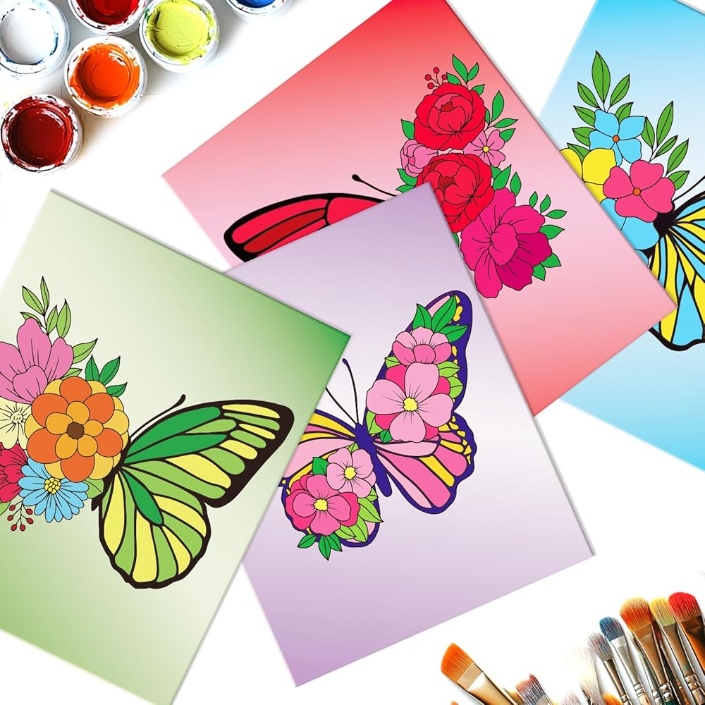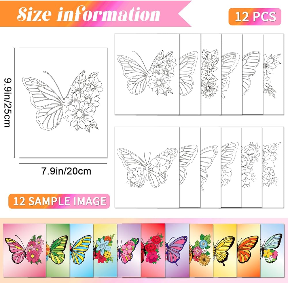 GLASSWINDS 12Pcs 8 x 10 Inch Pre Drawn Canvas to Paint for Adults, Paint Canvases for Painting, Pre Printed Canvas Set Sip and Paints Kit for Paints Party Favors(Butterfly)
