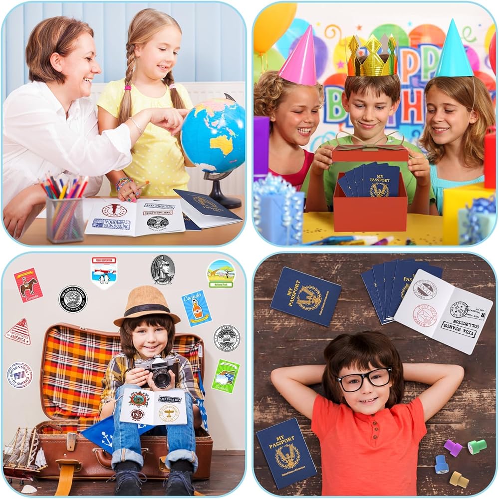 deal party gifts: these pretend passports for kids can be regarded as nice party gifts for travel theme parties, kids' birthdays, school carnivals, baby showers, classroom activities and other important parties, adding more fun, can be applied to many different theme parties and is a perfect gift choice