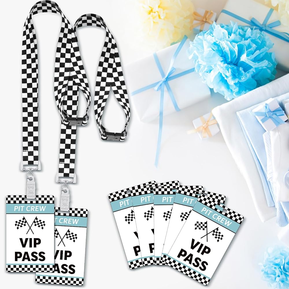 These VIP pass accessories come in a compelling racing theme design, ideal for sports enthusiasts. The predominant red, black, and white color scheme brings a dynamic ambiance that adds character to the event.