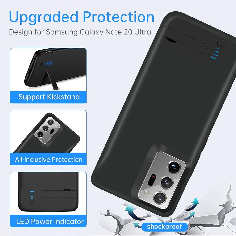 [Charging and Protecting 2 in 1] The Battery Case for Samsung Note 20 Ultra not only provide proction but also charging your phone. Durable material, provide full back cover protection, against scratches or daily damage. Convenient for daily use.