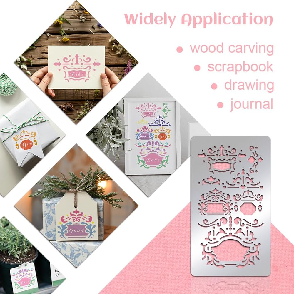 Metal Journal Stencil: This bookmark metal journal stencil Including many frame pattern, different frame decoration pattern, perfect for decorating your scrapbooks and notebooks, delicate and cute!