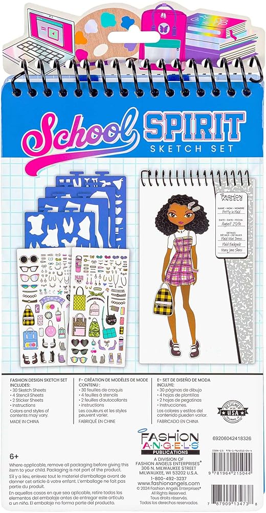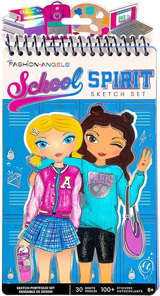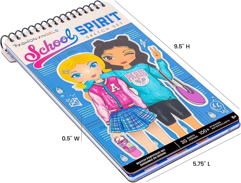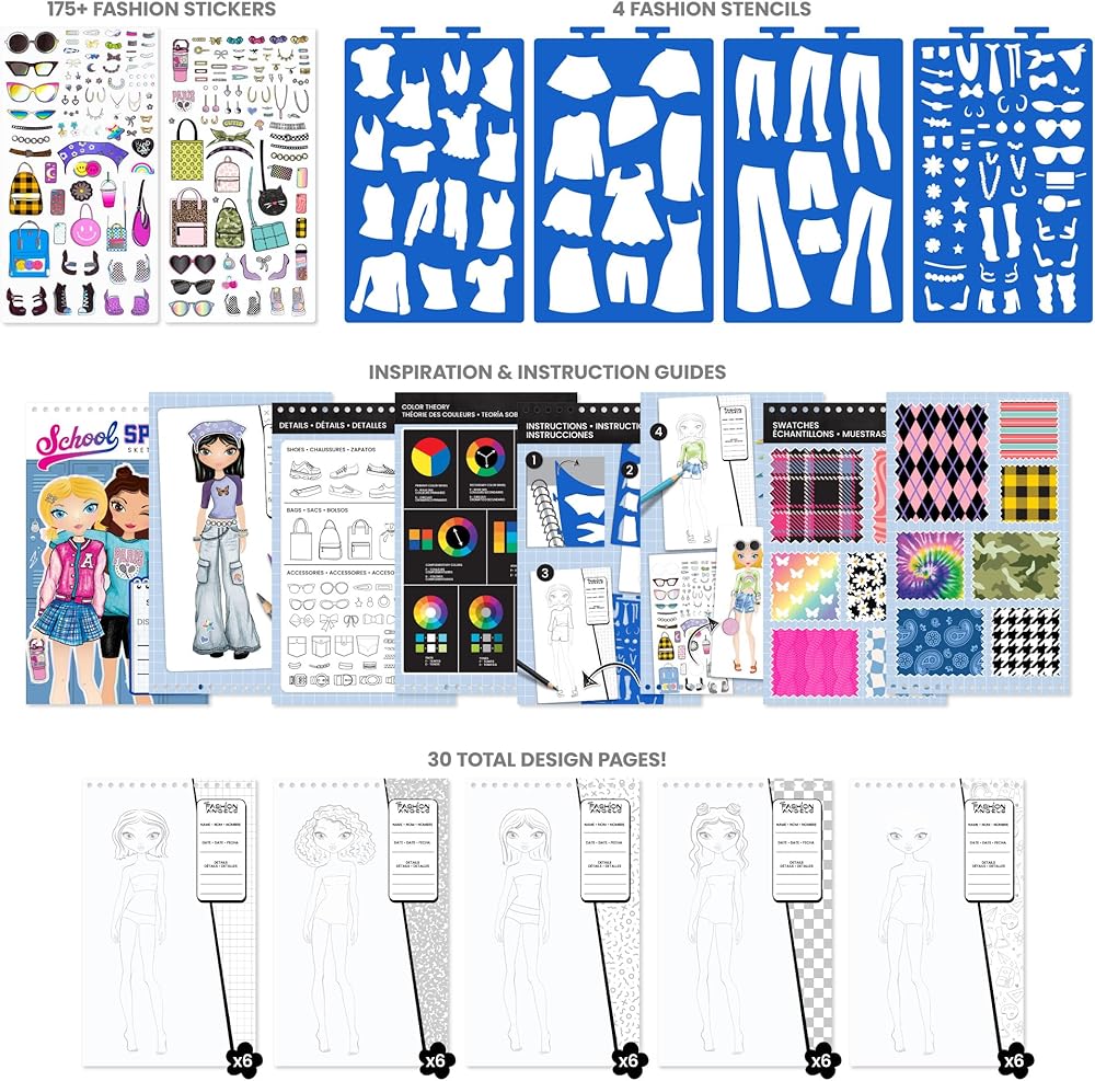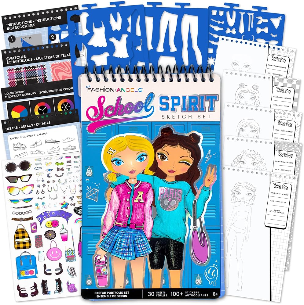 Fashion Angels School Spirit Sketch Set, Includes Sketch Pad with Stencils & Stickers, Fashion Design Sketch Book for Girls, Ideal Drawing Kit for Kids