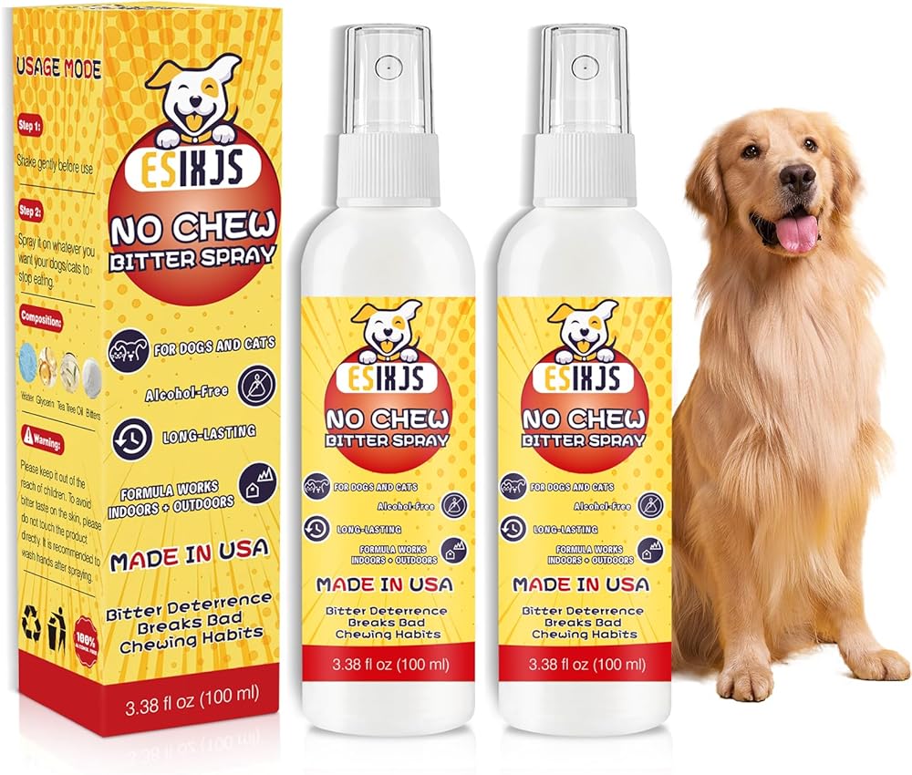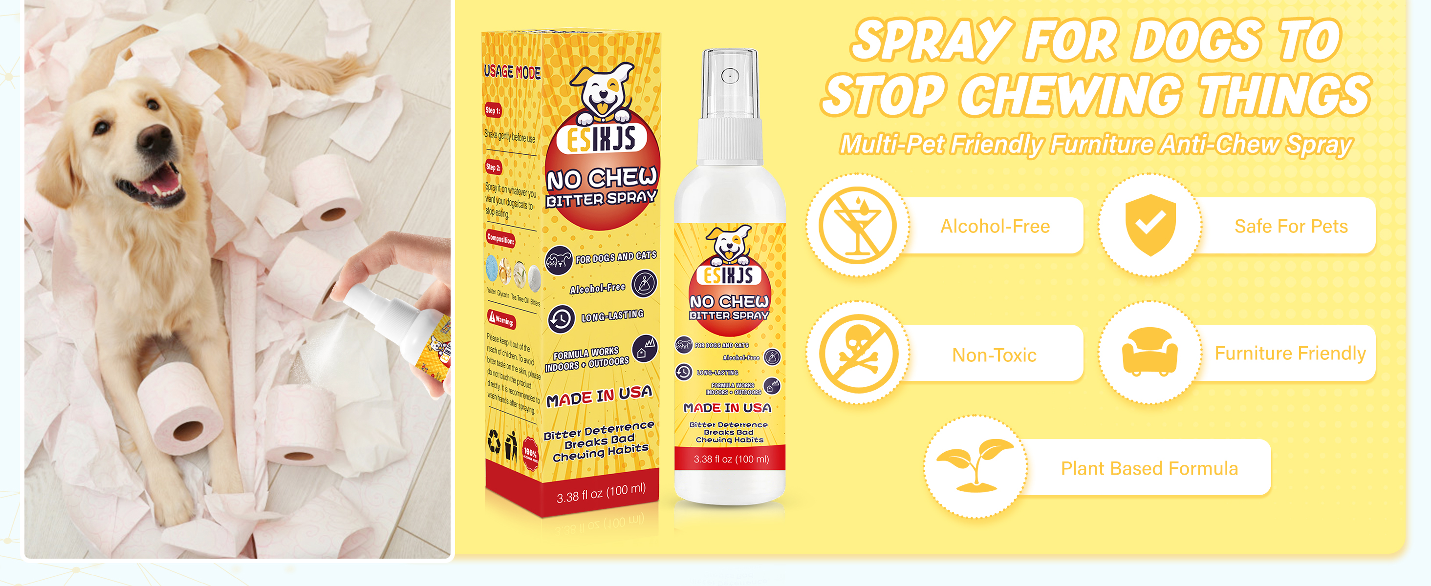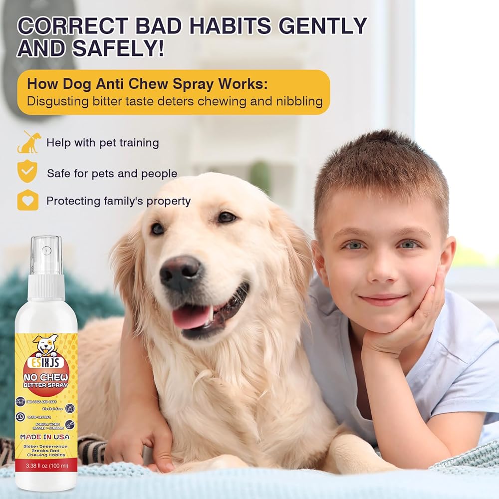 DOG NO CHEW SPRAY: Pets may lick and bite items due to teething, or exploration. No bite spray for dogs can effectively correct bad behavior. Stop chewing dog spray can be used as a training aid to correct bad habits of dogs such as licking wounds, tearing furniture, scratching walls, etc. For best results from dog deterrent spray, we recommend using no chew dog spray 3 to 4 times a day for the first month. As dog adapts to improved behavior, gradually reduce frequency of no chew spray