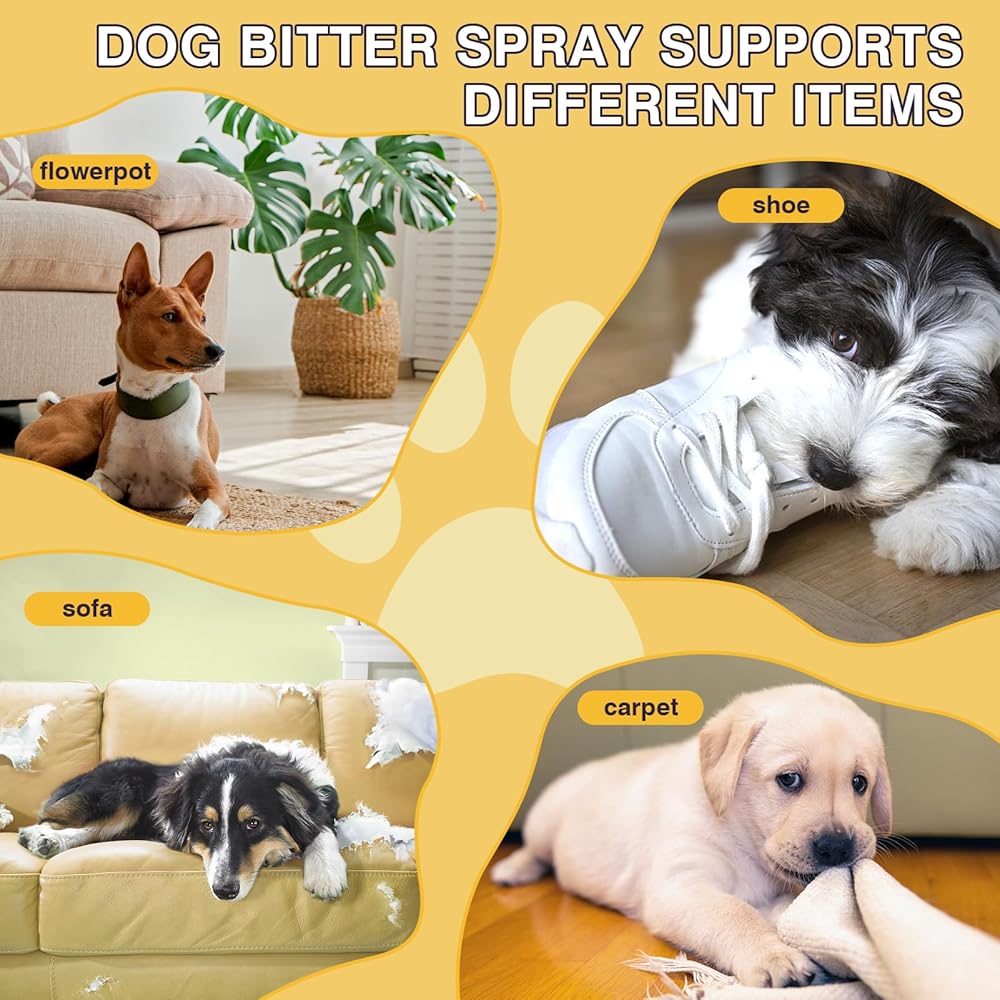 LONG-LASTING BITTER TASTE DETERRENT: Dog spray for furniture has a long-lasting bitter taste deterrent effect and can continue to stop dogs from chewing furniture for a period of time. Bitter spray for dogs can curb pets' bad behaviors. Dog spray for plants will leave an unpleasant smell on the surface. Bitter apple spray is easy and quick to use. You can spray dog corrector spray in bathrooms, bedrooms, storage rooms and other areas where you don't want dogs to go