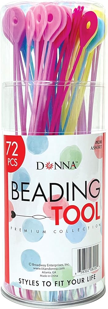 DONNA EZ Beader Hair Threading Tool – 72pcs Beading Loops for Kids Hair Beads, Braiding, Ponytails & Craft Accessories – Flexible Plastic Threader for Quick Styling – Assorted Colors