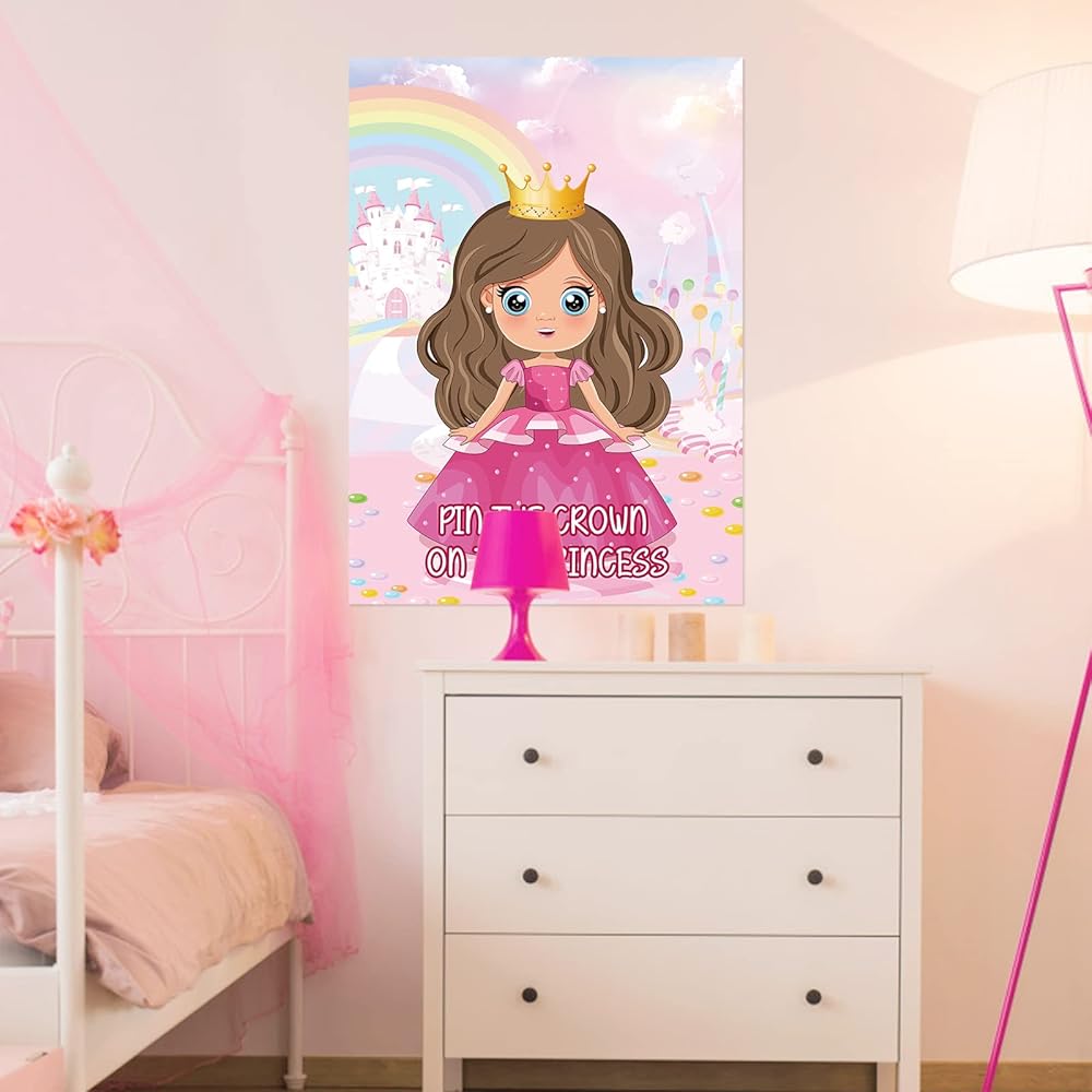 Hooqict Pin The Crown on The Princess Party Games for Kids Girls Princess Birthday Party Decorations Tea Party Favors Supplies, Large Pin The Tail Games Poster with 24 Crown Stickers