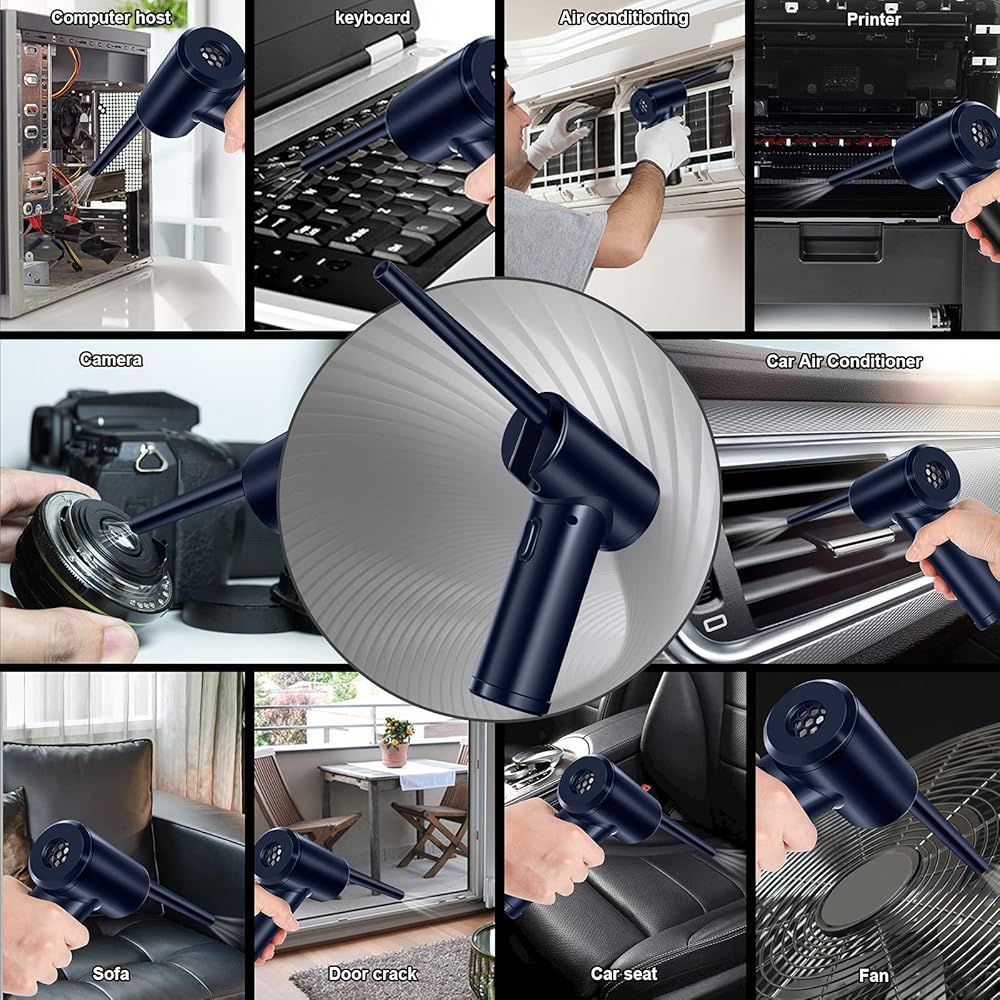 🌀ENHANCED CLEANING POWER: ❶.Upgrade max power 60W, 40000 RPM motor provides ultra-strong airflow for deep cleaning of microscopic dust. ❷.Fit for different devices cleaning ranging from the computer, camera lens, PS4/5, laptop, air conditioners, sofa, printed circuit boards to electronic instruments, medical devices cleaning; ❸.Replaces Compressed Spray Gas.