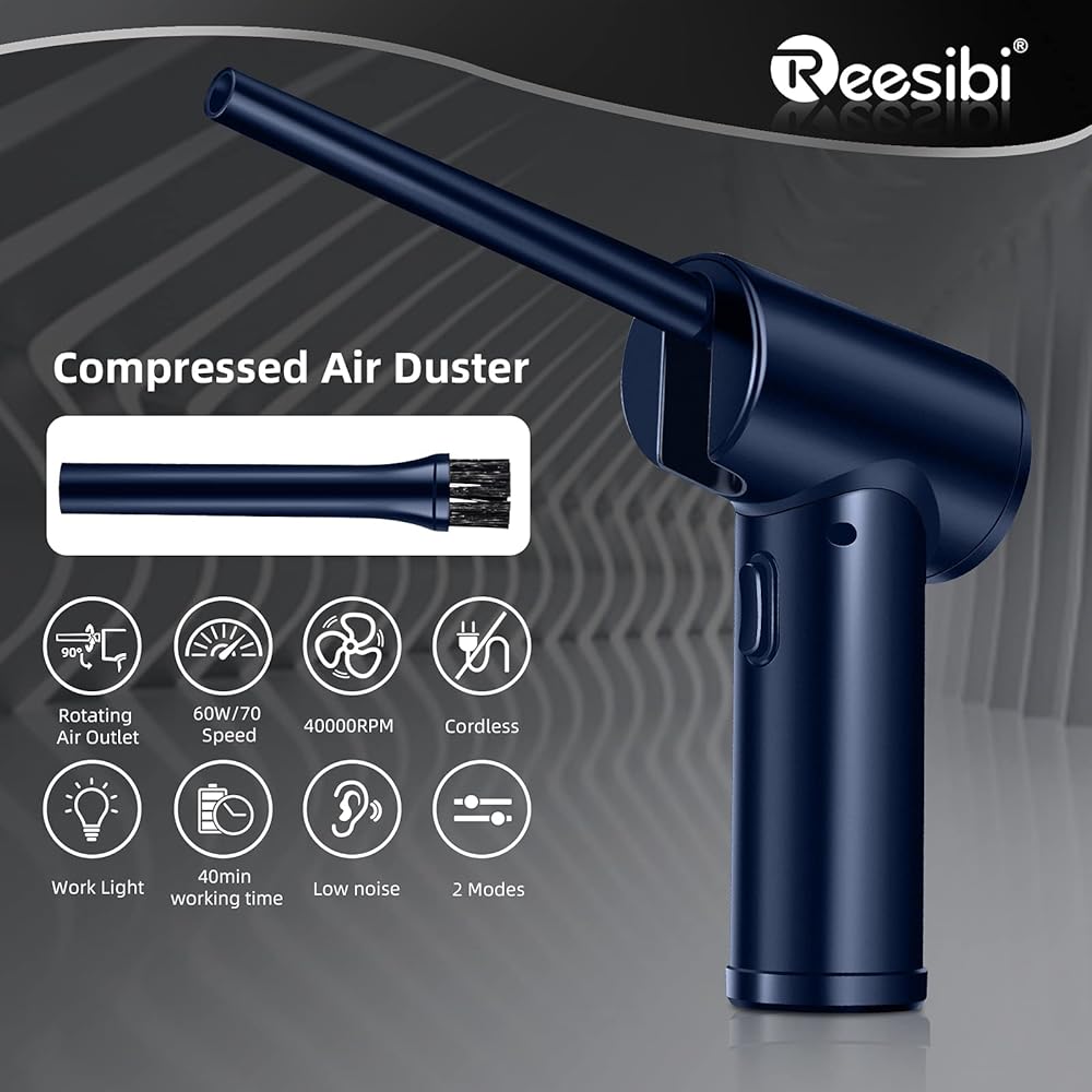 Reesibi Electric Cordless Air Duster - 40000 RPM Portable Air Blower 6000mAh Compressed Air Duster Alternative to Air Can Gas Cleaning for Keyboard Laptop PC Camera Cleaner