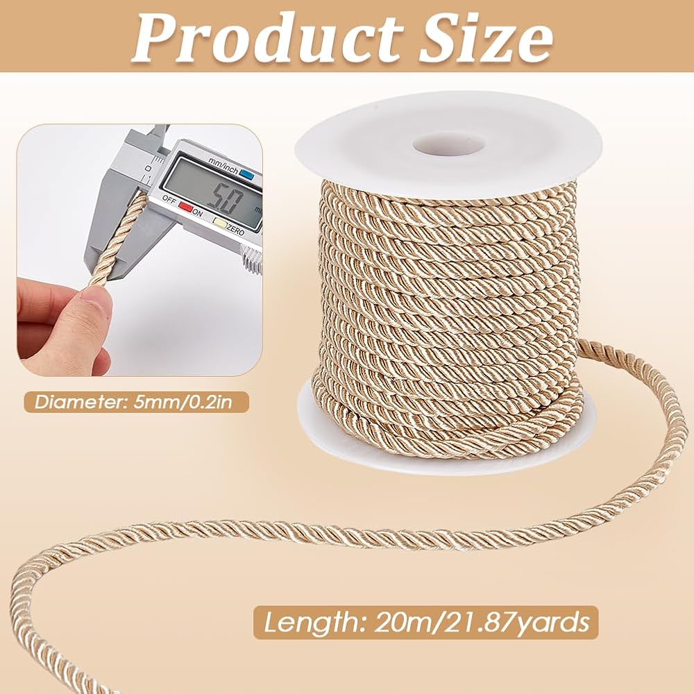 20 Meters Twisted Cord: Comes with 20 meters/21.87 yards twisted rope, can be cut to any length you want, easy to tie and knot, adds a touch of elegance and makes it ideal for sewing and crafting