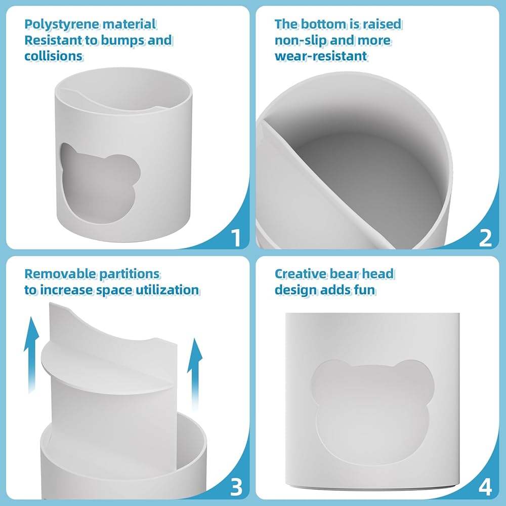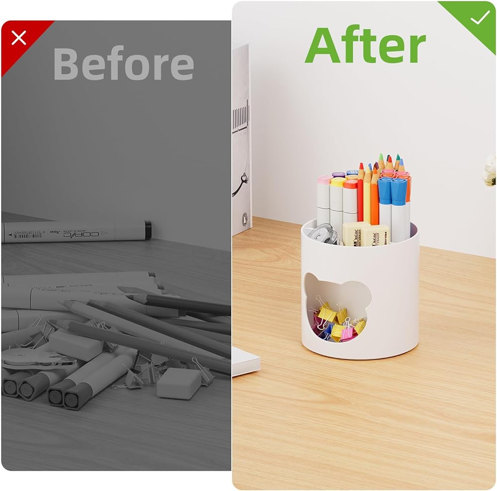 Marbrasse Desk Organizer, Cute Pen Holder for Desk, Pencil Pen Organizer for Classroom Must Haves, Art Supply Storage Box Caddy for Office, Home (White & White Bear Head, one size)
