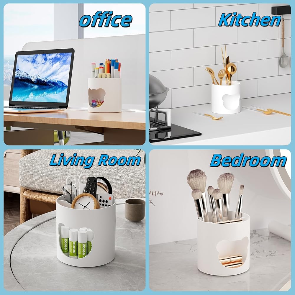 【Multifunctional desktop organizer 】This rotating storage box is perfect for pencils, cosmetics, bathroom essentials, toiletries and even kitchen utensils. Try it in your craft room, playroom, laundry/utility room, or even inside the bathroom cabinet or under the sink; store extra office supplies such as drawing pens, correction tapes, scissors, TV remote controls, etc.; later, even headphones or chargers will not be scattered everywhere! Maximize your vertical space and keep your desktop tidy