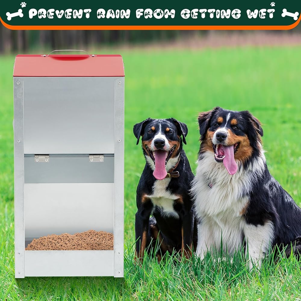 Easy to Used: the galvanized gravity feeder for dogs comes with screws and installation instructions, which can be easily installed according to the instructions, and the top lid can be easily opened, which is convenient for you to add feed and prevent the rain from wetting the food