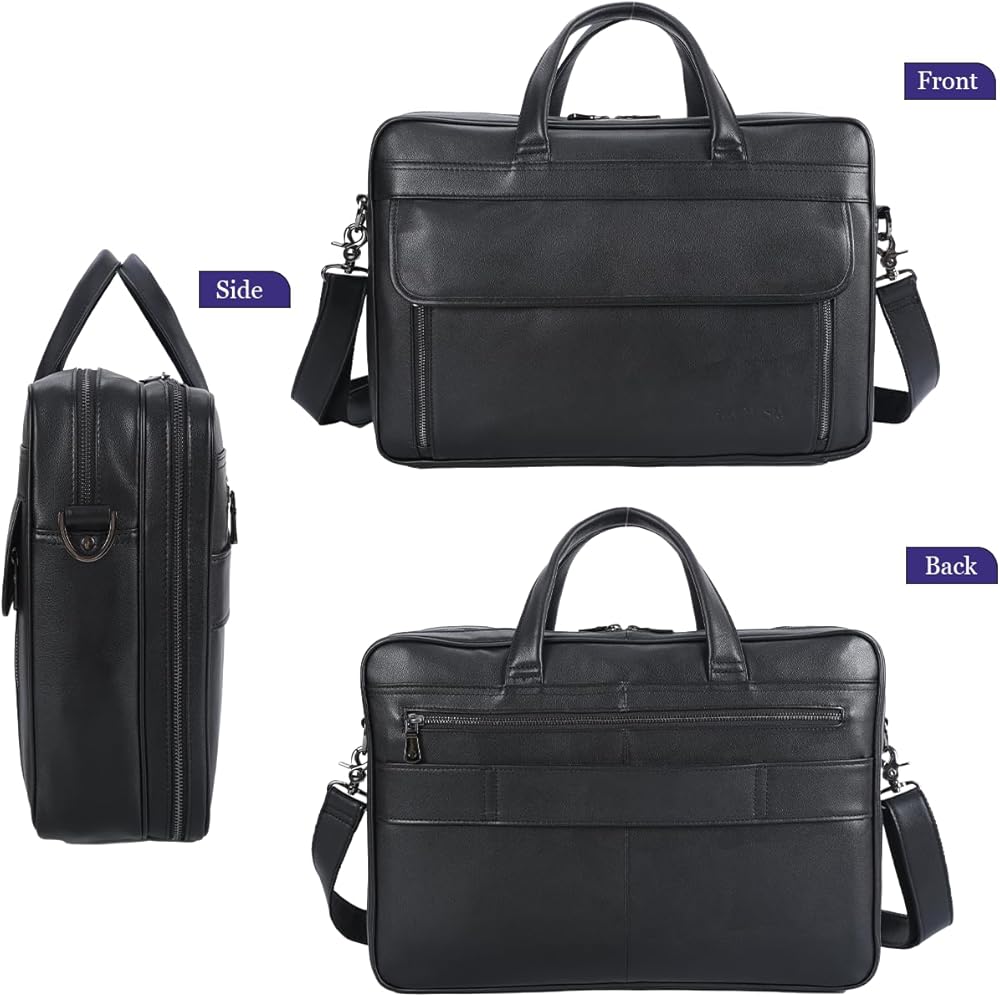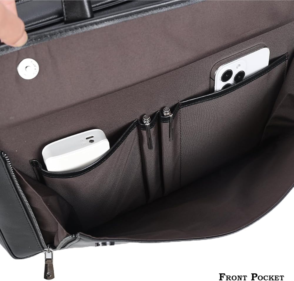 【ROOMY INTERIOR】 Featuring 2 large compartments and variety of front/back and interior zipper pockets, this briefcase features a 15.6" laptop sleeve and large compartment which fits up to 17.3" laptop. Variety of pockets are designed for pads, phones, wallets and other essentials, satisfying all your daily or travel needs, while keeping everything organized.
