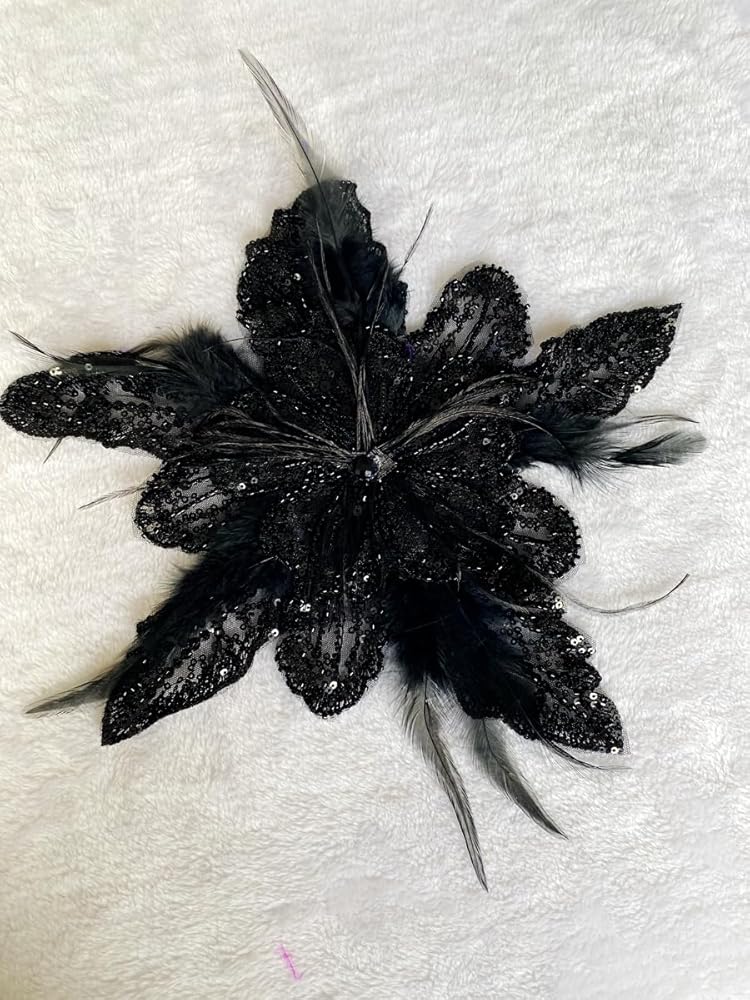 Handmade Sewing Crystal DIY Applique Patches Accessory Ostrich Feather Beaded for Wedding Party Clothes Decoration Bridal Dress Accessories 10X12inches (Black)