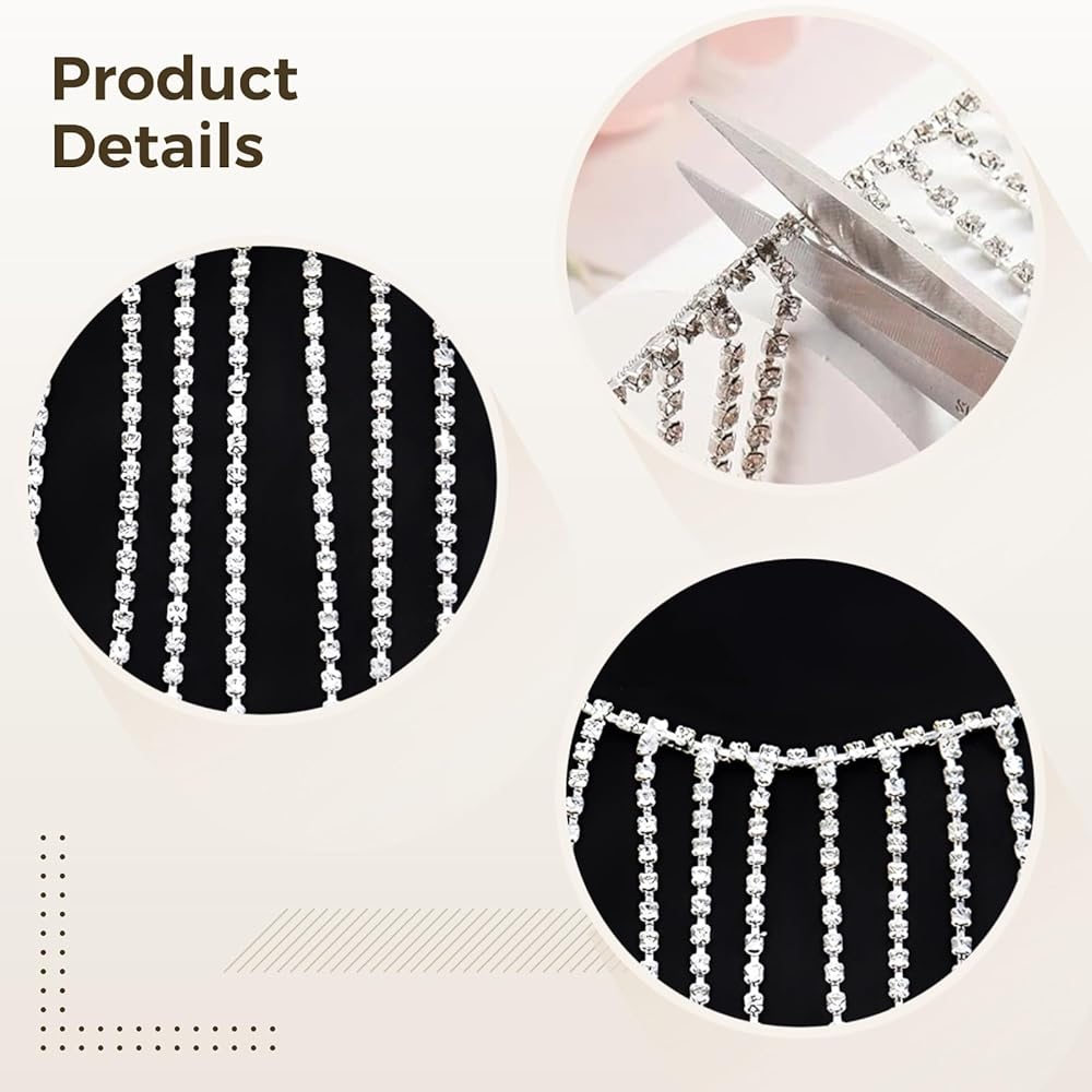Multiple Applications: Ideal for wedding dress embellishments, dance costumes, evening wear, home decor, and craft projects; transform ordinary items into extraordinary pieces with this versatile rhinestone fringe trim