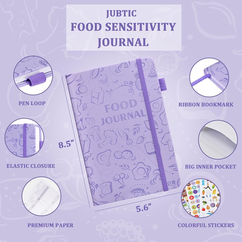 JUBTIC Food Sensitivity Journal, Food Journal for Women Weight Loss, Food Diary and Symptom Log for Ibs, Allergies, Intolerance, Low Fodmap, Health Habit Tracker-(5.6 X 8.5") Purple