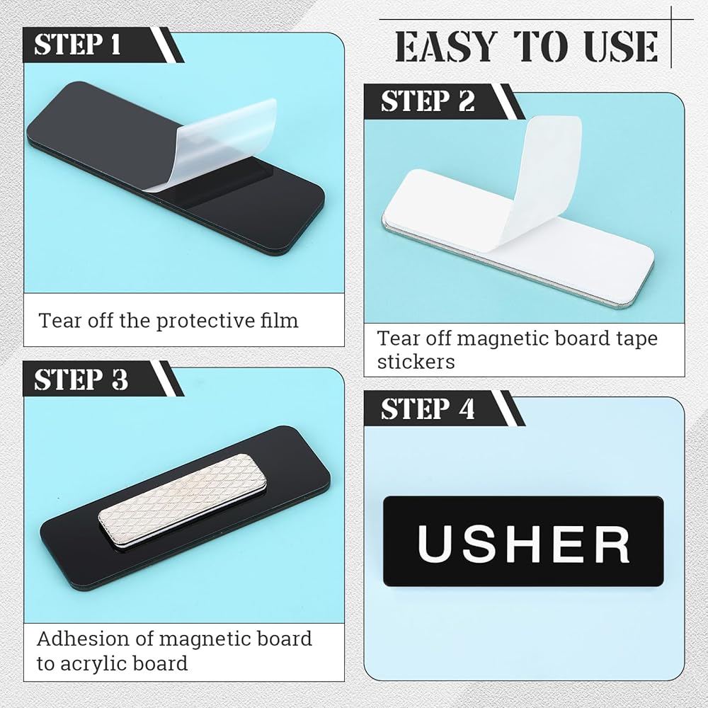 Package includes: 12 x Usher Badges and 4 x Name Tag