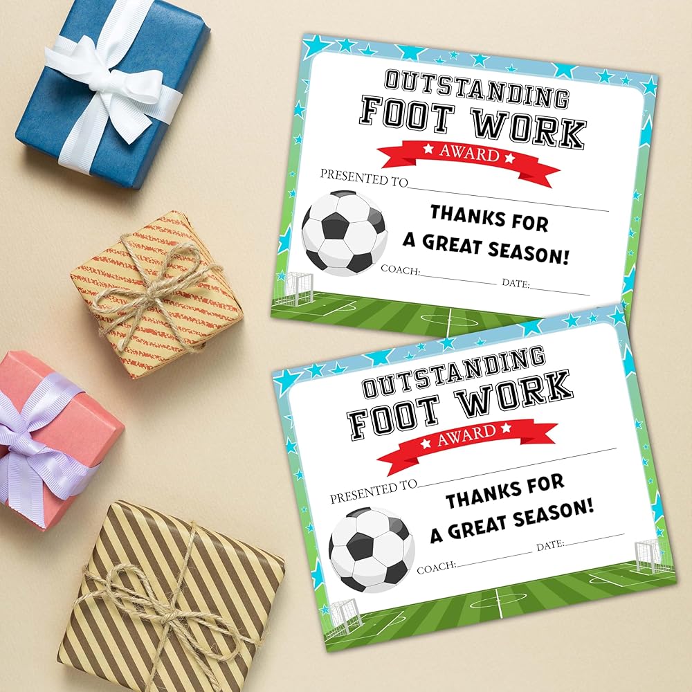 Sports Achievement Award Certificates, 25 Pcs Certificate of Achievement for Soccer, Outstanding Foot Work Award Certificates, Football Awards for Kids Youth Student, Sports Supplies for Teams, 40