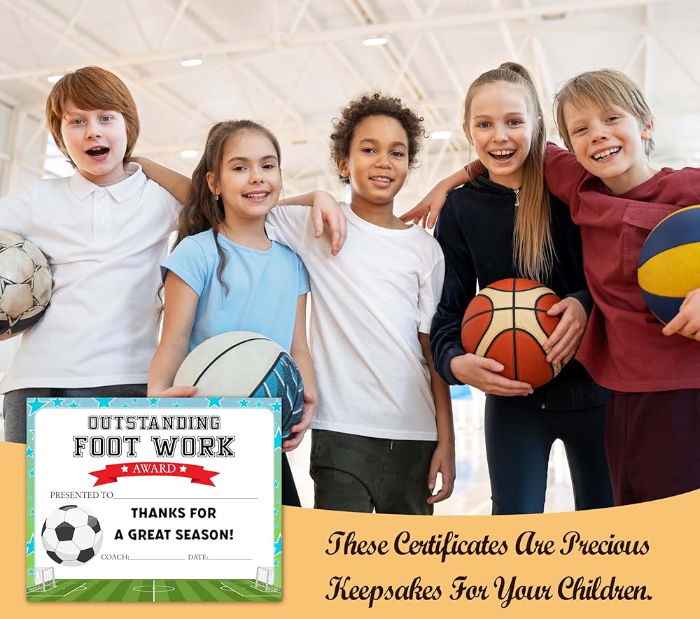 Souvenir Gifts: Our award certificates are designed to recognize the achievements of young players and make them feel valued and appreciated. These certificates can be used for a variety of activities, including end-of-season parties, school athletic events, and recognition ceremonies, inspiring them to continue to work hard and strive for excellence in future seasons.