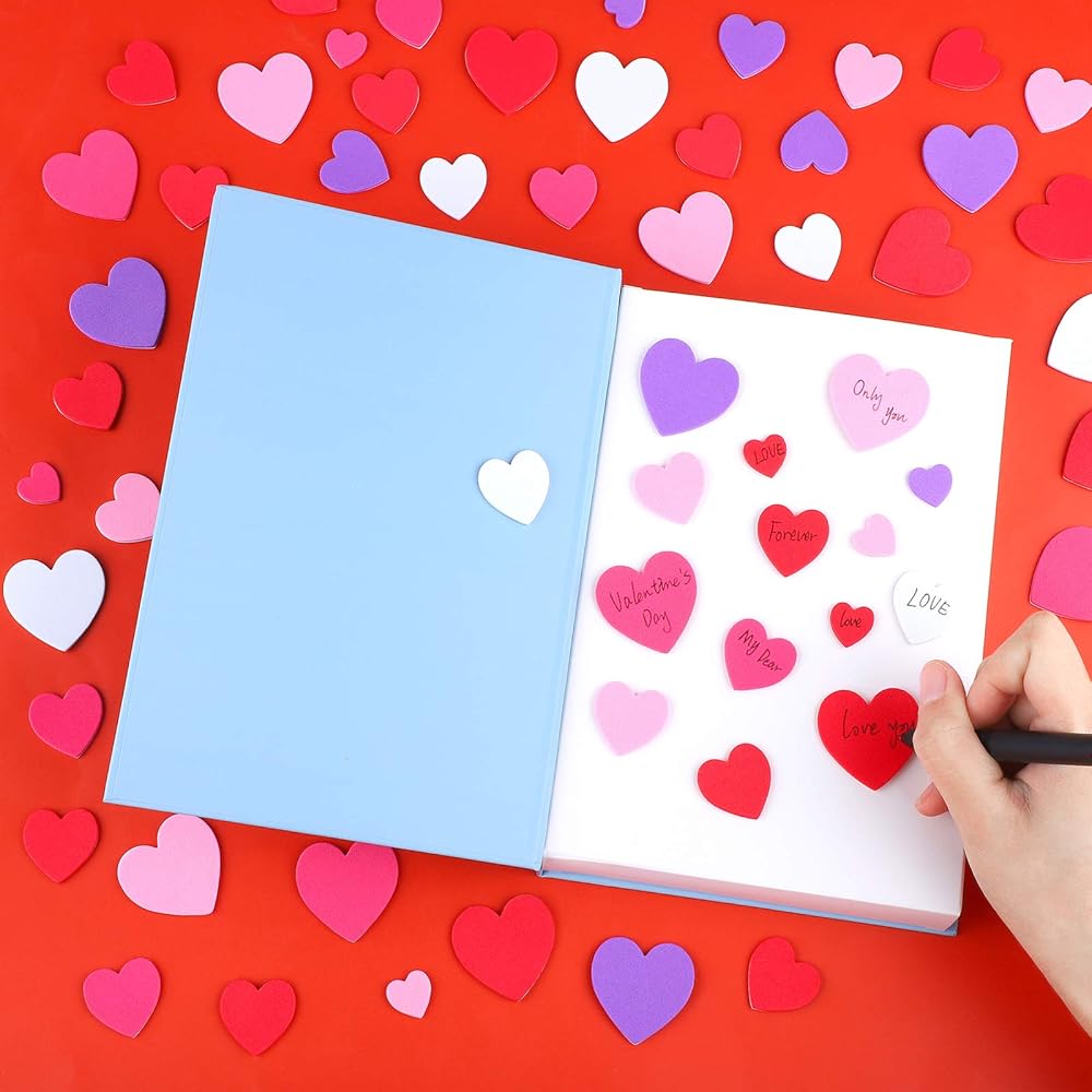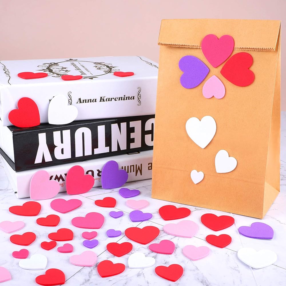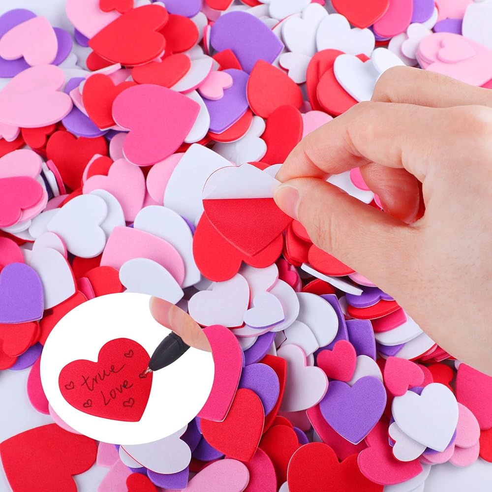 Foam heart shaped stickers for Valentine's Day: these valentine stickers are shaped in heart, which look sweet and cute, can create a romantic atmosphere for Valentine's Day, and are necessary for Valentine's Day decoration
