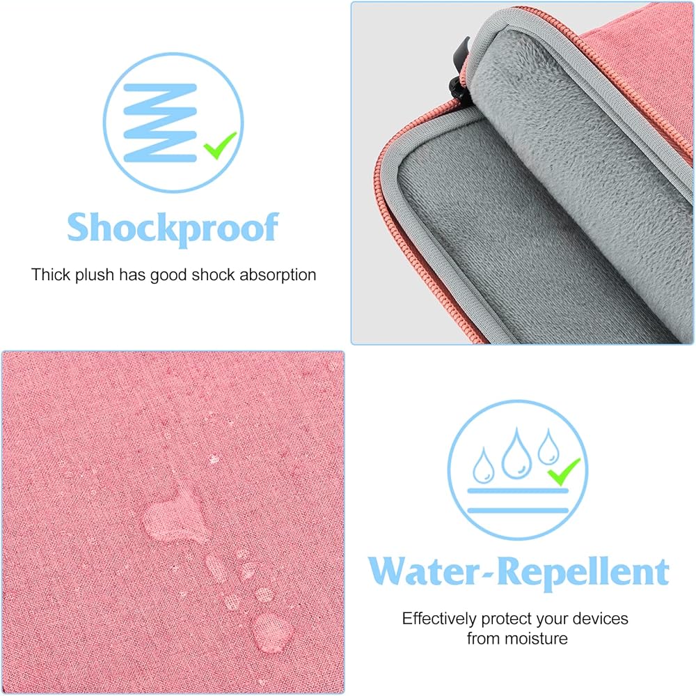 Perfect Protection: Water-resistant and soft fluff interior design make this computer portable bag more practical. High quality zipper: Fine workmanship, smooth and wear-resistant zipper allows quick access to your computer and provides security that make sure your computer won't slip easily. Additional Storage: The front pocket can store additional accessories like power adapters or chargers. Note: Internal Dimensions: 210 x 150 mm (8.0 x 5.3 inches) External Dimensions: 230 x 165 mm (9.2 x 6.6 inches) To ensure the product is suitable for your tablet, we suggest you measure the dimensions of your laptop (not diagonal dimension) and compare it with the item internal dimensions before purchasing.