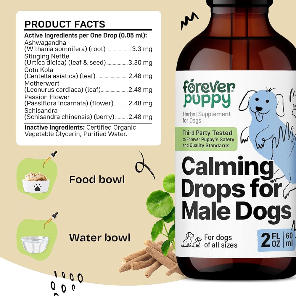 Forever Puppy Calming Drops for Male Dogs - Pure Ashwagandha & Passion Flower Extract for Composure - Liquid Relaxing & Mood Support Supplement for Dogs of All Breeds & Sizes - 2 oz