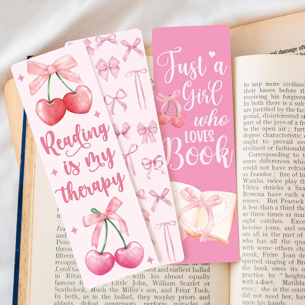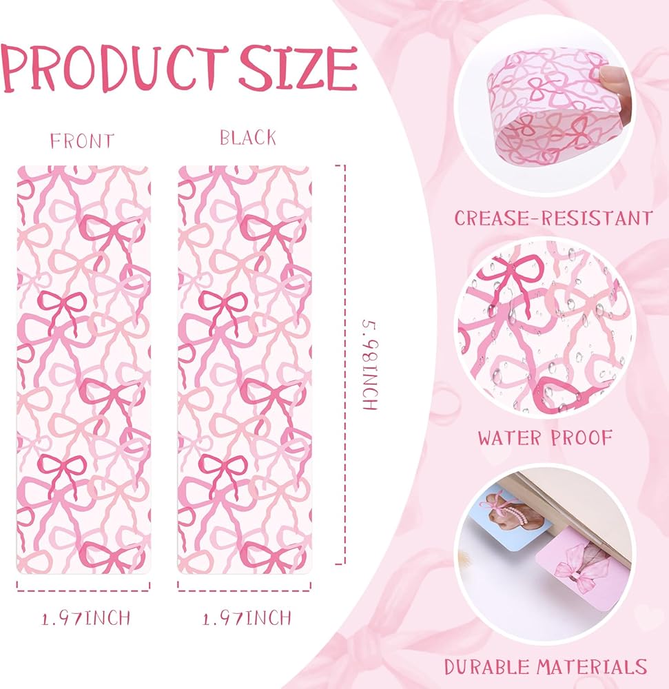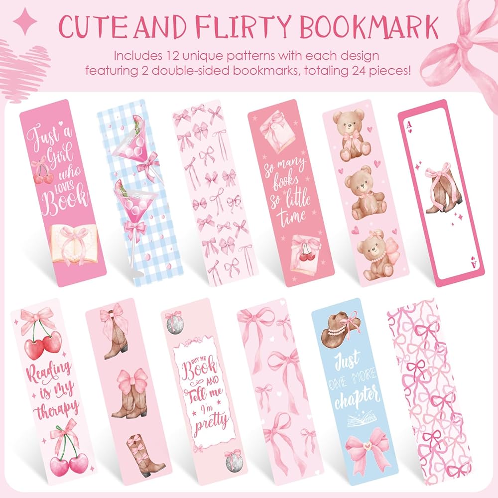 Coquettte Bows Paper Bookmarks for Women - 24 Pcs Pink Bow Cherry Paper Bookmarks for Girl, Cute Panda Cowboy Hat Bookmarks Creative Gift for Girlfriend Student Teacher Book Lover