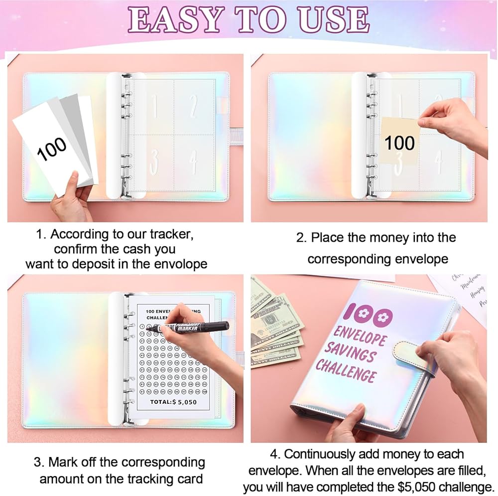 The A5 savings challenges book can motivate you to save 5050 dollars in 100 days. The money challenge binder with pockets not just a tool, it's a system that guides you to gradually increase your savings, helping you develop a lasting habit of financial responsibility.