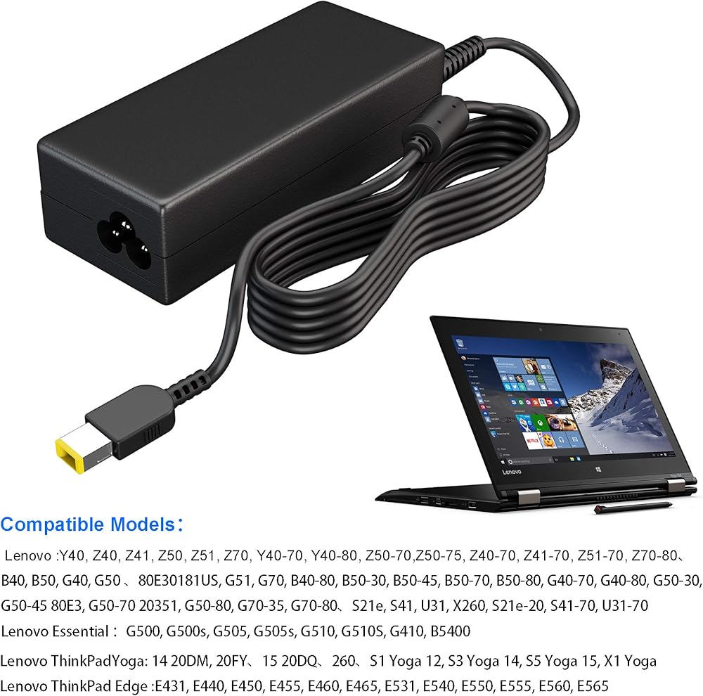 Laptop Charger Replacement for Lenovo: 20V 3.25A 65W (20V 2.25A 45W also compatible), Yellow Squar Charger Port! Not USB C! Input Volt Range: 110-240V. Replacement for Original Lenovo Charger Laptop AC Adapter Power Cord.