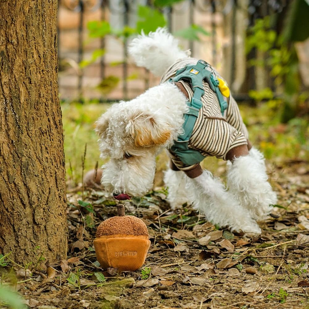 Squeak Dog Toy: Inside the acorn is an irresistible squeaker that triggers a delightful sound with every bite, igniting your dog's natural instincts to chase and play. The combination of the acorn's natural design and the engaging squeak creates an unforgettable play experience.