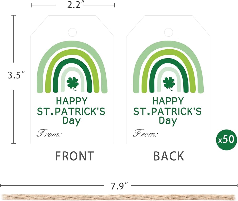【Packing Includes】: This set includes 50 double-sided St. Patrick's Day appreciation gift tags with pre-cut holes, along with 50 pieces of sturdy hemp rope. You can easily tie these labels to beautifully wrapped gifts and share a touch of Irish luck with your friends,classmates and colleague.