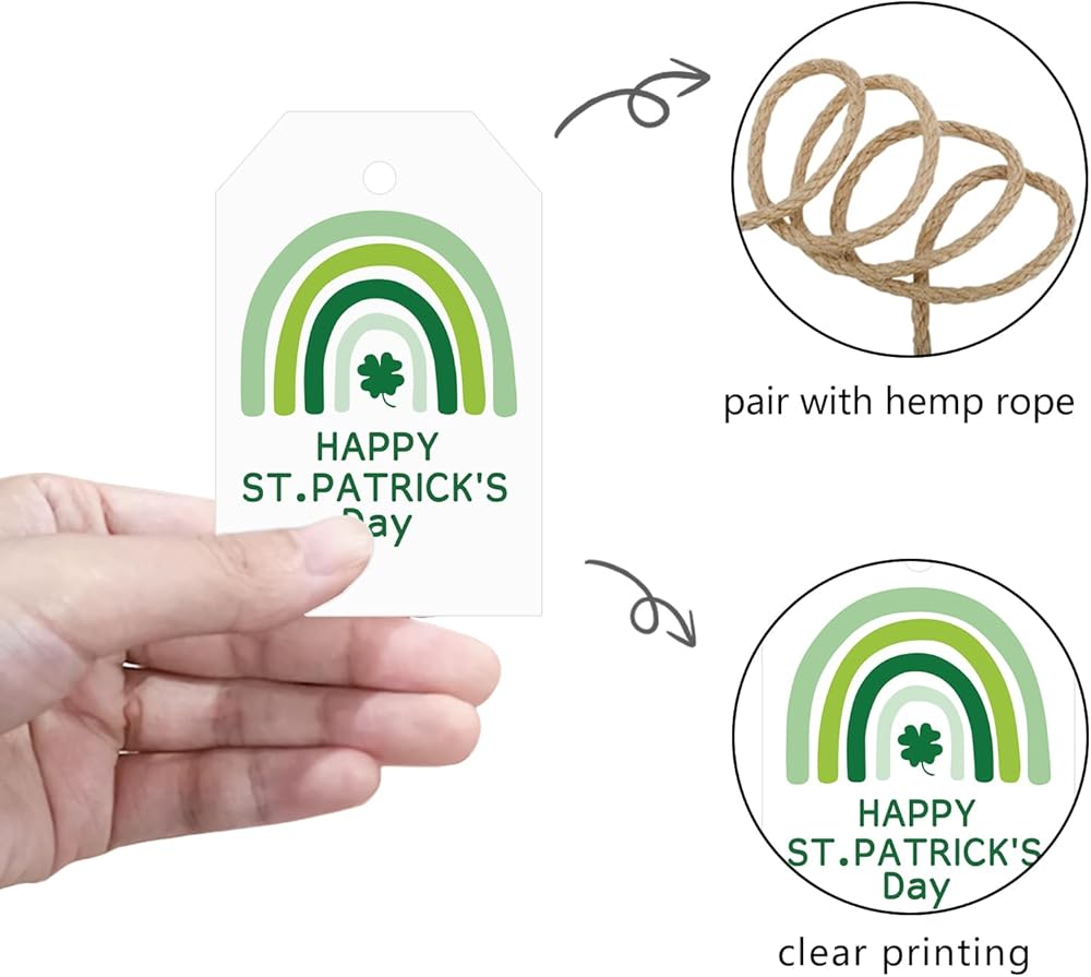 【A Wide Range of Uses】: Our gift tags are perfect choice for St. Patrick's Day. It can be widely used as a name tags, bookmark,gift box decorative, candy bag decorative, treat decorative,etc. It's a great choice for school activities,family gatherings, company activities,shamrock themed parties,Irish parties and any St. Patrick's Day celebrations.