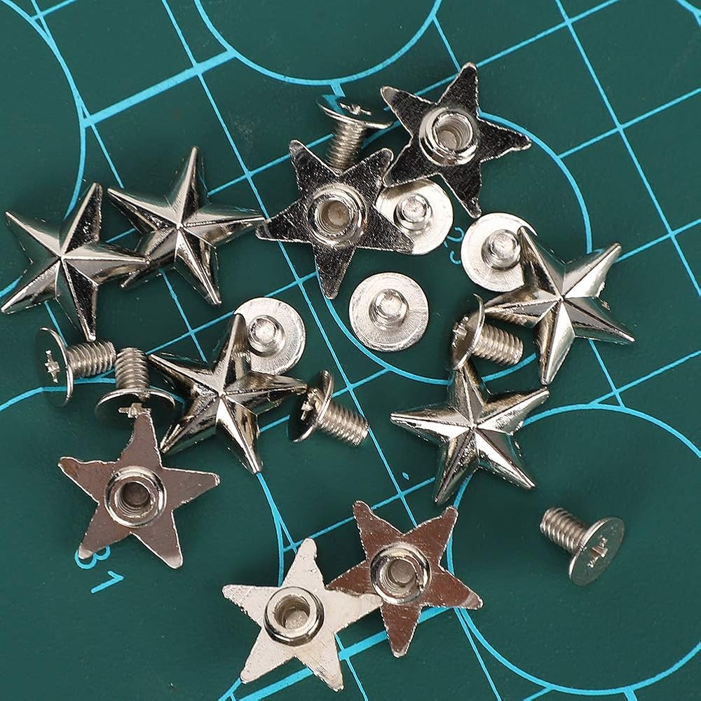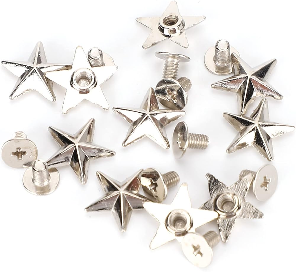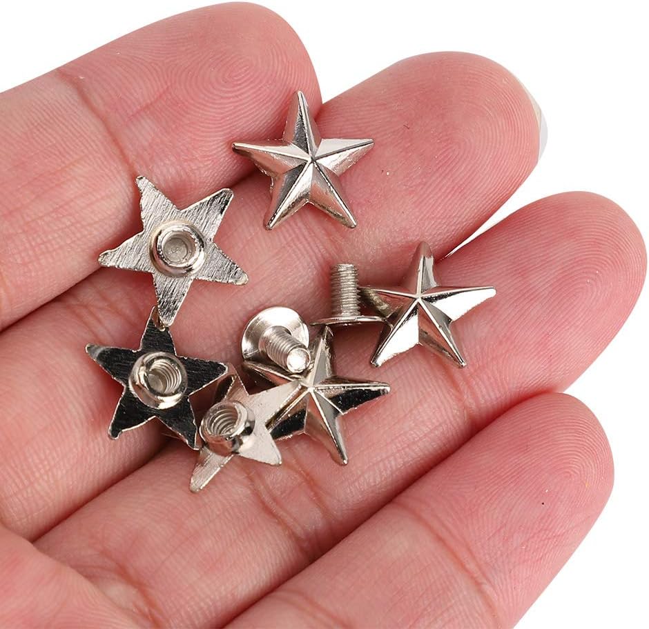 50 Set 14mm Silver Star Shape Rivets, Metal Star Studs and Spikes for Leather Craft DIY, Garment Rivets Studs for Shoes, Bags, Clothing, Decoration, Belts, Dog Collar, 0.6in (Silver)