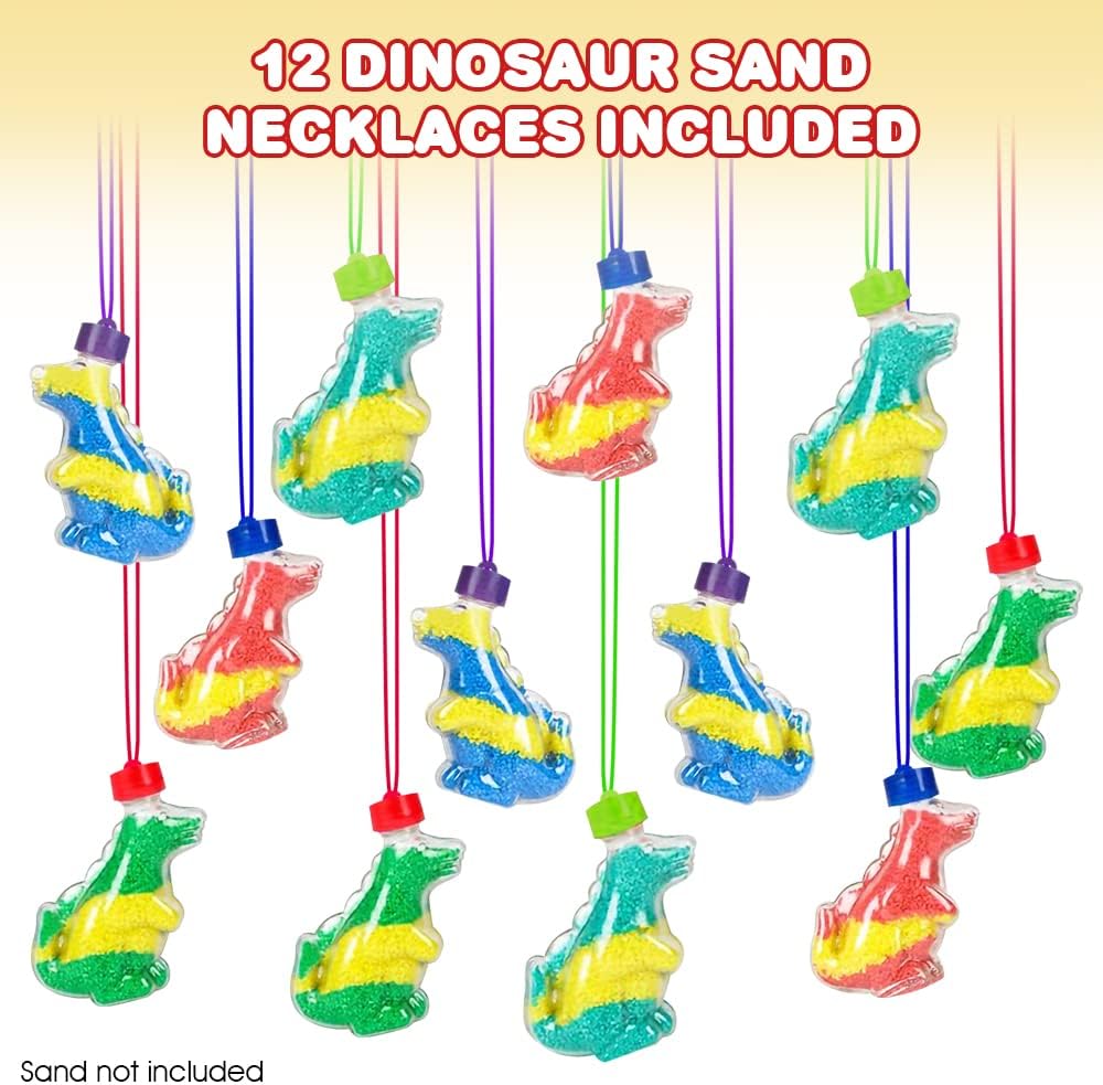ArtCreativity Dinosaur Sand Art Bottle Necklaces, Pack of 12, Craft Kit with Shaped Bottles, Craft Party Supplies and Party Favors for Kids - Sand Sold Separately (Dinosaur)